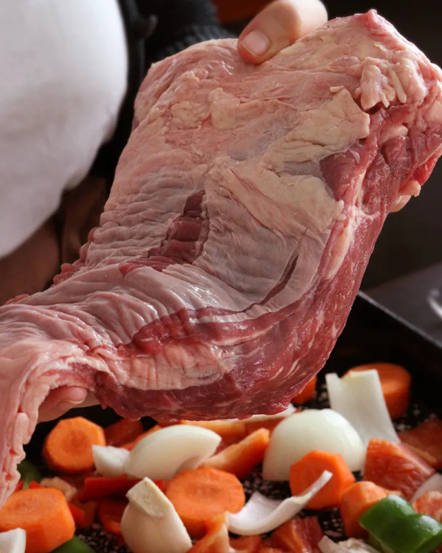El vacío es un corte que se extrae de la parte baja del costillar, justo entre las costillas y la cadera del animal. Por su ubicación anatómica, esta pieza está rodeada de membranas y fibras musculares largas, lo que le confiere una textura particular que se vuelve muy sabrosa con una cocción adecuada.